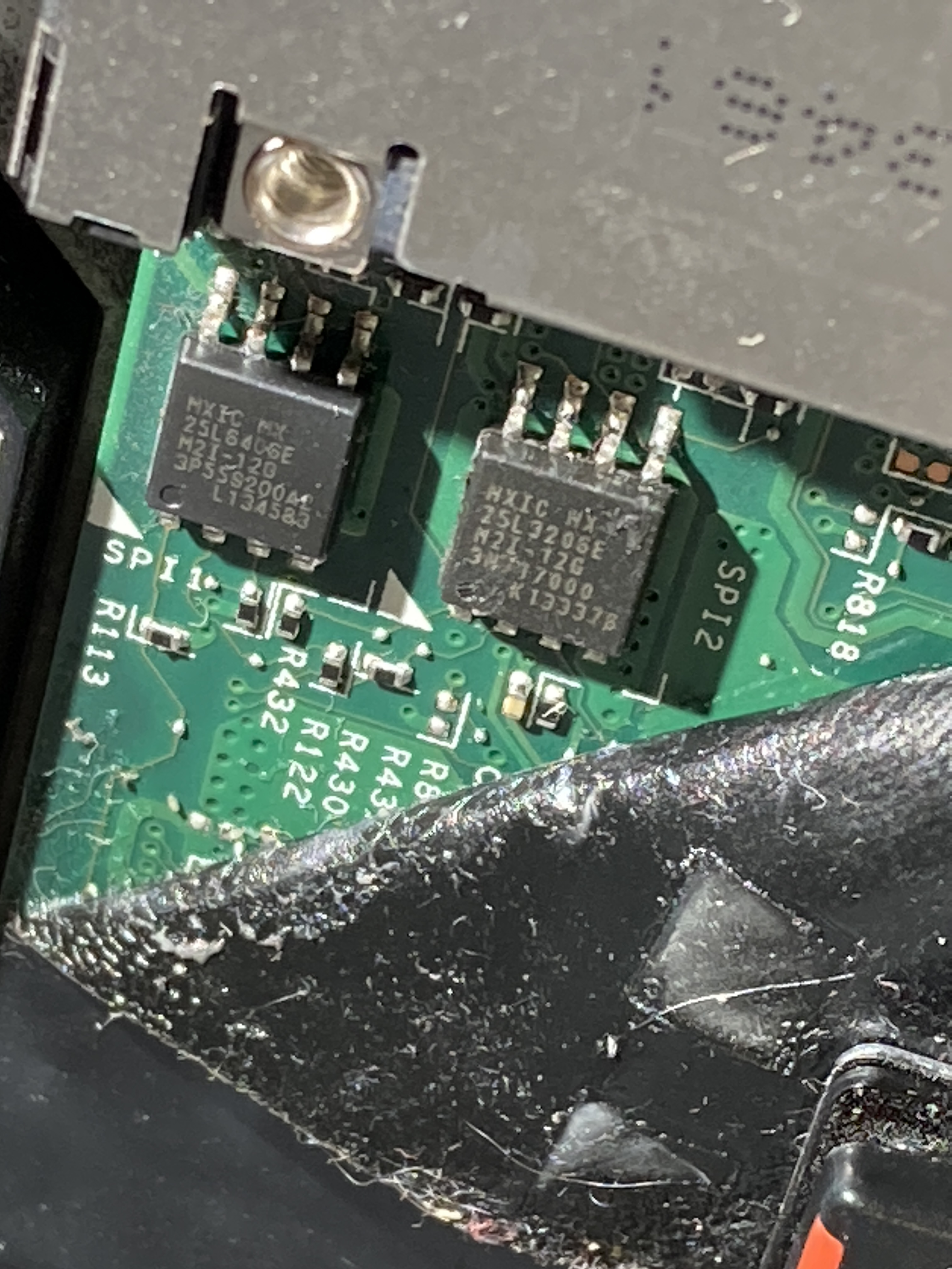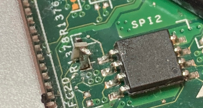 To understand the role of the missing resistor better, we started looking for schematics online. I managed to find an OK looking one from a random forum and started browsing through it. The keyword of the day was “SPI” and when searching for it, we found some promising results. My friend found the resistor and found that we could just short it, since the resistor used to be between two wires. And that he did.