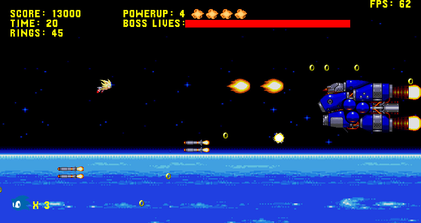 With that feedback in mind, I rewrote the game from scratch, made fewer stupid mistakes and added new features as well. It was still around the same concept of the Sonic the Hedgehog 3 final boss level, but the obstacles and enemies were more varied and the game ran at 60 FPS even on an old laptop.